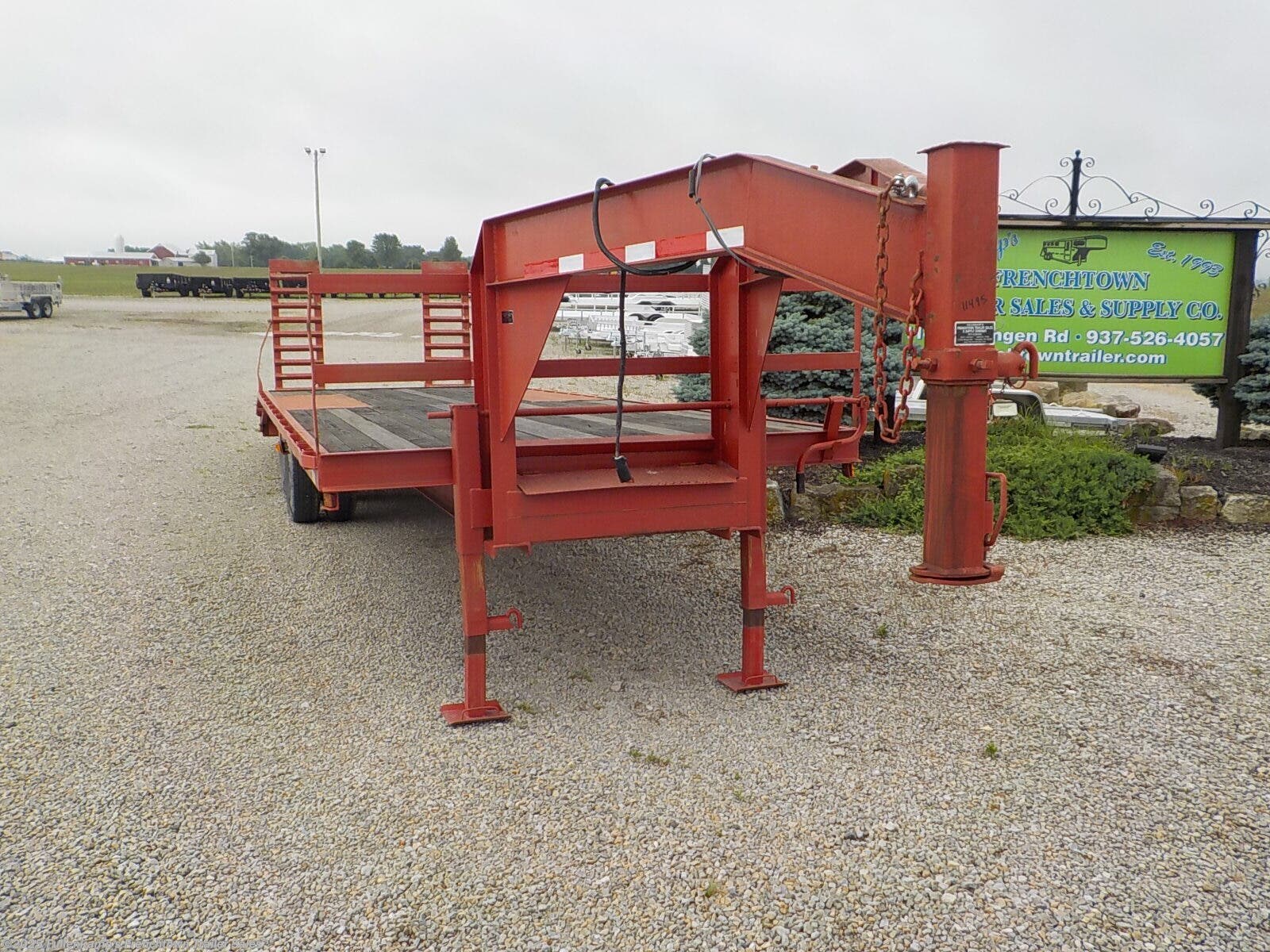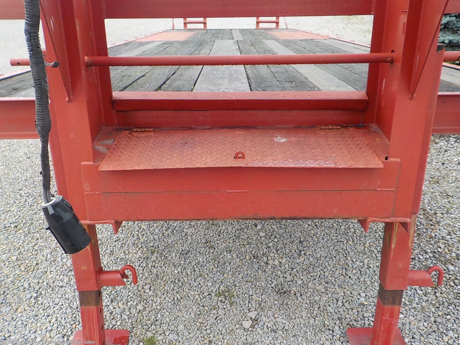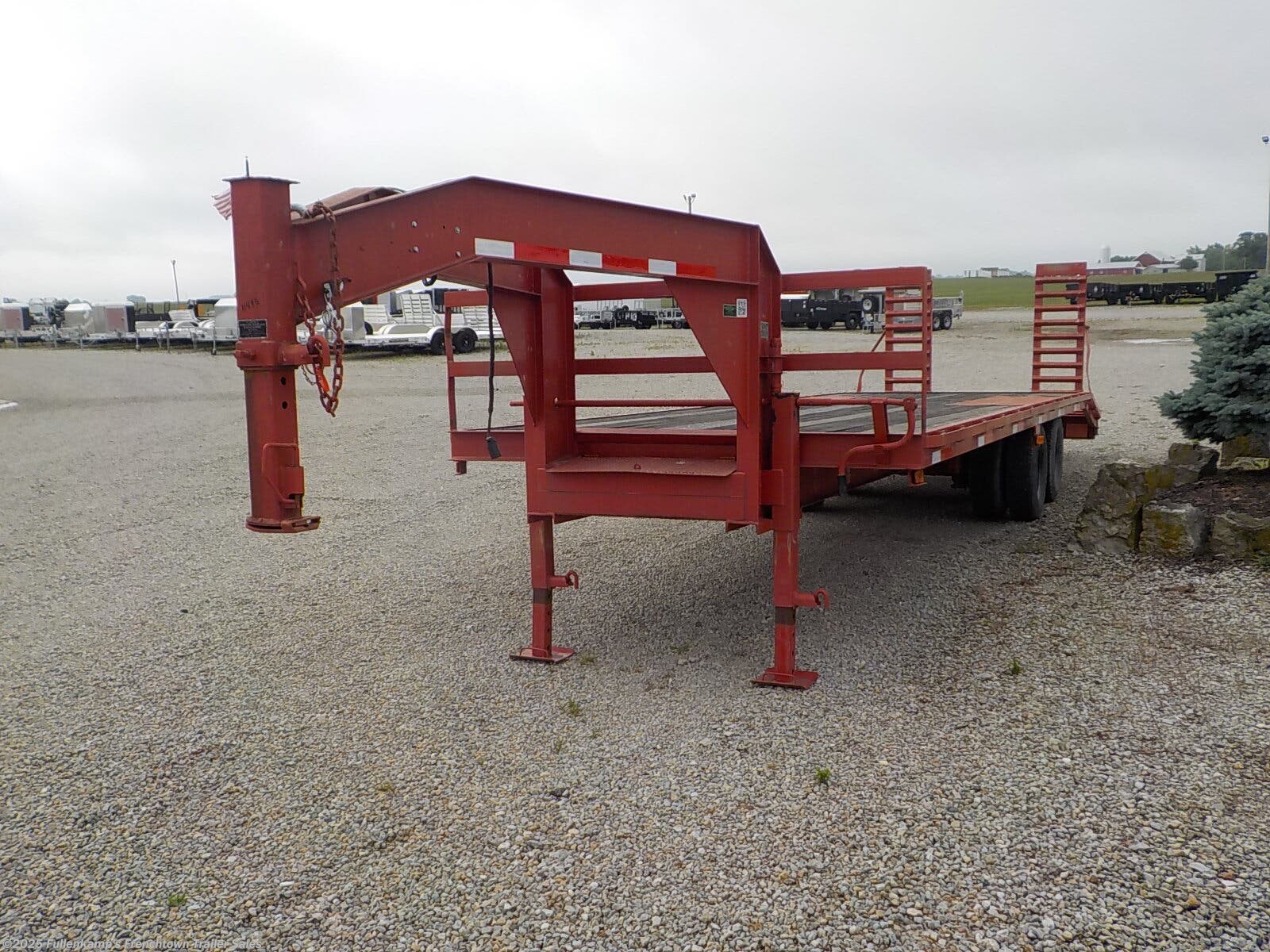2006 QUALITY TRAILER INC. 24' LONG W/ 4' DOVETAIL GOOSENECK FLATBED, 102'' OVERALL WIDE W/ RUB RAIL & STAKE POCKETS, X 24' FLAT DECK, PLUS 4' OPEN STEEL DOVETAIL W/ 2 - 5' LADDER RAMPS, DUAL DROPLEG JACKS, ADJUSTABLE 2-5/16'' BALL GOOSENECK COUPLER W/ SAFETY CHAINS, WOOD FLOORING, ST-235/85R X 16'' LOAD RANGE "E" TIRES, 8 - BOLT WHEELS, 10K AXLES W/ ELECTRIC BRAKES, DOT LEGAL, 7-WAY RV PLUG, RUBBER MOUNTED LIGHTS, TOOL BOX BETWEEN THE GOOSENECK UPRIGHTS, RED IN COLOR, 25500# GVWR, 6500 APPROX # SHIPPING WEIGHT. SN: 5NDFH28206S000143