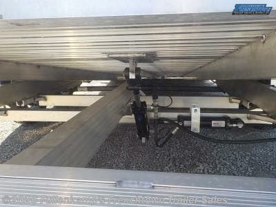 2023 ALUMA TRAILER MFG. MODEL 8218 TILT-TA-EL-RTD UTILITY TRAILER, 101-1/2" OVERALL WIDE, 81" BETWEEN THE FENDERS X 18' LONG TILT DECK PLUS A 20" STATIONARY DECK WITH FRONT RETAINING RAIL, 8 STAKE POCKETS (4) PER SIDE, CONTROL VALVE TO ADJUST RATE OF DESCENT, 44-1/2" LONG A FRAMED TONGUE, REMOVABLE ALUMINUM TEARDROP FENDERS, 2500# CAPACITY PADDED TONGUE JACK, 2-5/16" BALL COUPLER W/ SAFETY CHAINS, EXTRUDED ALUMINUM PLANK FLOORING, ST205/ 75R 14" L.R. C RADIAL TIRES ON 5-4.5 B.P. ALUMINUM LYNX WHEELS, (2) 3500# RUBBER TORSION AXLES W/ BRAKES ON BOTH AND COMPLETE BREAK-A-WAY SYSTEM AND BATTERY, DOT LEGAL, 7-WAY RV PLUG, LED LIGHTING PACKAGE, ALUMINUM IN COLOR, 7000# GVWR, 1500# SHIPPING WEIGHT, SN: 1YGHD1828PB254980