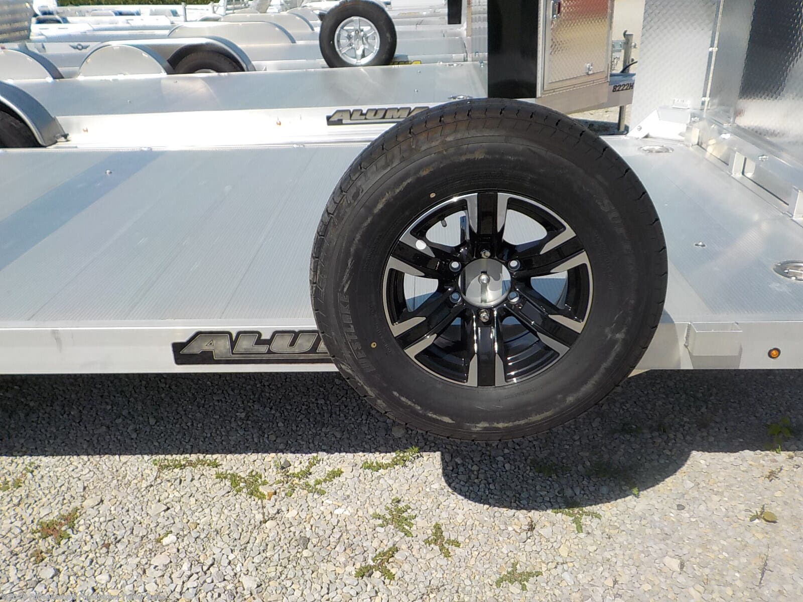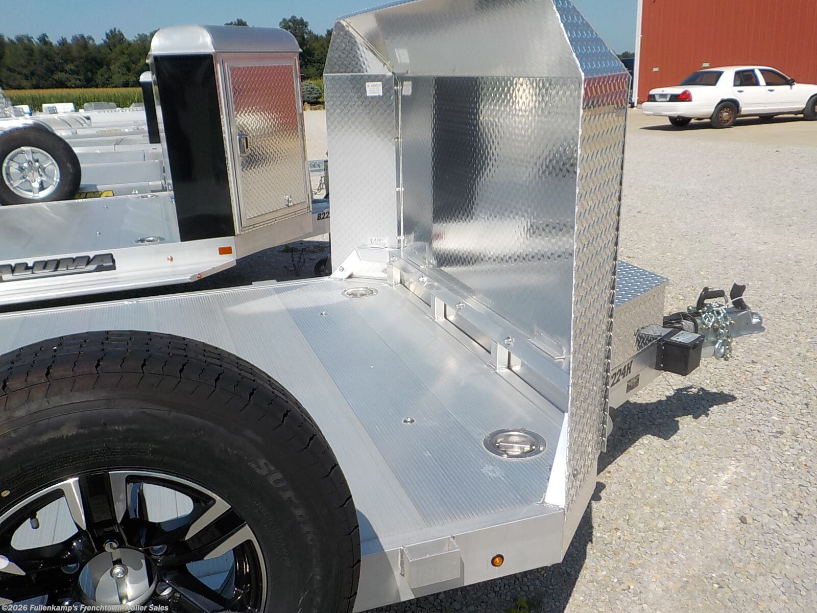 2024 ALUMA TRAILER MFG. MODEL EX8224H-TA-EL-R-RTD TANDEM HEAVY DUTY AUTO CARRIER, 102'' OVERALL WIDE, 82'' BETWEEN THE REMOVEABLE FENDERS X 24' 9" FLAT DECK, 4 RECESSED STAINLESS STEEL 5K TIE DOWN RINGS AND 3 STAKE POCKETS PER SIDE, 2 - 7' SLIDE IN THE REAR LOADING RAMPS, REAR STABILIZER JACKS, 40" SPREAD AXLE, 8 BED LIGHTS, TONGUE HANDLE, STORAGE BOX W/ LIGHT, RECEPTICAL HOLDER, AIR DAM, FENDER STEPS, 1500# SWIVEL TONGUE JACK, 2-5/16'' BALL COUPLER W/ SAFETY CHAINS, ALUMINUM PLANK FLOORING ST-225/75R X 15'' LOAD RANGE "E" RADIAL TIRES, 6 - BOLT BLACK ALUMINUM WHEELS W/ SPARE AND MOUNT, 5200# TORSION AXLES W/ BRAKES ON BOTH, DOT LEGAL, RV PLUG, ALL ALUMINUM CONSTRUCTION, 9990# GVWR, 2190# SHIPPING WEIGHT. SN: 1YGHD2429RB281877