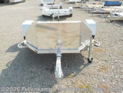 2024 ALUMA TRAILER MFG. MODEL MC2F FOLD UP 2 PLACE MOTORCYCLE TRAILER, 94" OVERALL WIDE, 72" WIDE BETWEEN THE FENDERS, X 9' 7" LONG BED W/ (4) MOTORCYCLE WELD ON TIE DOWN LOOPS W/ 1 RECESSED TIE DOWN, ALUMINUM TREAD PLATE 24" TALL SALT / ROCK GUARD, 26-3/4" WIDE X 56" LONG PULL OUT REAR RAMP STORED UNDER BED, 89.5" HIGH WHEN STANDING UP FOR STORAGE, SINGLE JEEP STYLE ALUMINUM FENDERS, 1200# SWIVEL TONGUE JACK W/ WHEEL, FOLDABLE STRAIGHT TONGUE W/ 2" BALL COUPLER W/ SAFETY CHAINS, ALUMINUM PLANK FLOORING, ST205/ 75R 14 L.R. C RADIAL TIRES ON 5-4.5 B.P. ALUMINUM WHEELS, (1) 3500# RUBBER TORSION AXLE, NO BRAKES, E-Z LUBE HUBS, DOT LEGAL, LED LIGHTING PACKAGE, 4-FLAT PLUG, 2 EA 2' MOTORCYCLE CHOCKS, ALUMINUM IN COLOR, 2990# GVWR, 625# SHIPPING WEIGHT, SN: 1YGUS0913RB271676