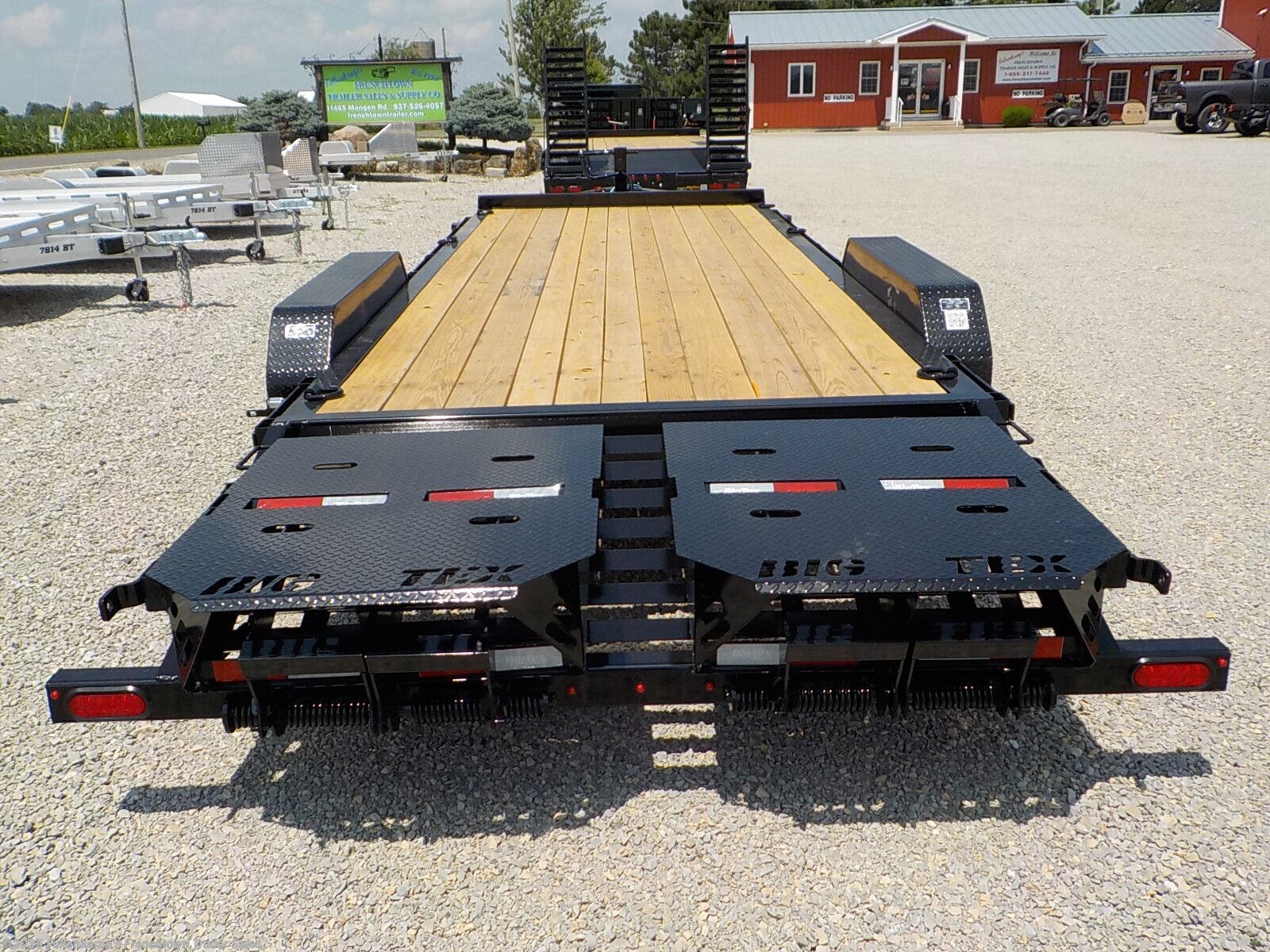 2026 BIG TEX TRAILER MFG. MODEL 14EH-22D3A-MRBK SUPER DUTY EQUIPMENT TRAILER, 102" OVERALL WIDE, 83" BETWEEN THE FENDERS W/ RUBRAIL AND STAKE POCKETS X 19' STRAIGHT DECK PLUS 3' CLEATED DOVETAIL, 6 DRINGS FOR TIE DOWNS, 22' TOTAL LENGTH, (2) FULL WIDTH FLIP OVER FLAT SPRING ASSISTED MEGA RAMPS, FRONT STOP RAIL, MEGA SIZED LOCKABLE LID STORAGE IN TONGUE, 8" I BEAM MAINFRAME, 8" SEAMLESS I BEAM TONGUE, 3" CHANNEL CROSSMEMBERS ON 16" CENTERS, REMOVEABLE 14 GA DIAMOND PLATE STEEL DOUBLE SQUARE BROKE FENDERS W/ BACK, (1) 12000# SIDE-WIND DROP LEG JACK W/ SANDPAD, ADJUSTABLE 2-5/16" DEMCO EZ LATCH BALL COUPLER W/ SAFETY CHAINS, 2" APEX FORTIFIED LUMBER DECKING, UPGRADED ST235/80 R 16 LOAD RANGE G RADIAL TIRES AND SPARE TO MATCH, (2) 7,000# SLIPPER SPRING AXLES W/ ELECTRIC BRAKES ON BOTH AND COMPLETE BREAK-A-WAY SYSTEM AND BATTERY, DOT LEGAL, 7-WAY RV PLUG, LED LIGHTING PACKAGE, SEALED WIRING HARNESS, BLACK IN COLOR, 15400# GVWR, 3306# SHIPPING WEIGHT, SN: 16V1C2826T2424356