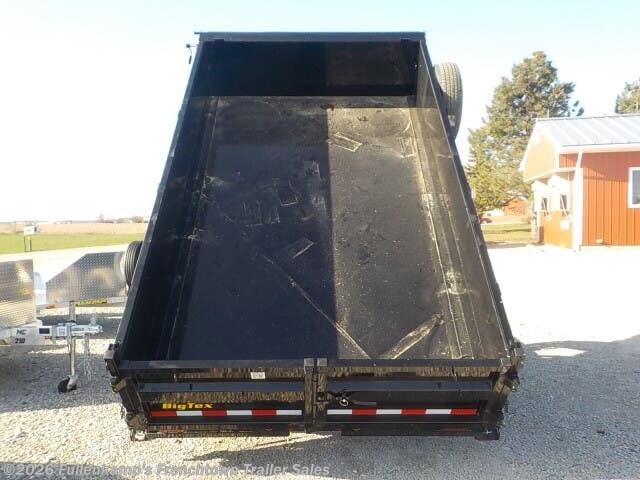 2026 BIG TEX TRAILER MFG. MODEL 14LP-12 BK6SIRPD HEAVY DUTY LO-PRO DUMP TRAILER, 102" OVERALL WIDE, 83" BETWEEN THE 10GA. 24" TALL SIDES X 12' LONG ON THE 10GA. SMOOTH STEEL FLOOR, STAKE POCKETS & J HOOKS ON SIDES, (4) D-RINGS WELDED IN CORNERS, COMBO REAR GATE BOTH SPREADER AND BARN DOORS, 8" I-BEAM 10# TONGUE AND MAINFRAME, 3" CHANNEL BED CROSSMEMBERS ON 16" CENTERS, LOCKABLE PUMP AND BATTERY BOX IN FRONT OF BED, 9" X 72" 14GA STEEL BLACK DIAMOND PLATE DOUBLE BROKE FENDERS, SELF CONTAINED ELECTRIC / HYDRAULIC SCISSORS HOIST POWER UP AND DOWN, 110V ON BOARD 5-AMP CHARGER, 12000# DROP LEG JACK, 18000# DEMCO ADJUSTABLE 2-5/16" BALL COUPLER W/ SAFETY CHAINS, ST235/ 80R 16 L.R. E RADIAL TIRES ON 8-BOLT BLACK MOD WHEELS W/ SPARE TO MATCH, (2) 7000# DROP AXLES W/ E-Z LUBE HUBS, BRAKES ON BOTH AXLES AND COMPLETE BREAK-A-WAY SYSTEM, DOT LEGAL, 7-WAY RV PLUG, CRANK STYLE MESH TARP KIT, 6' SLIDE IN REAR RAMPS, REAR STAB JACKS, LED LIGHTING PACKAGE, SEALED WIRING HARNESS, BLACK IN COLOR, 14000# GVWR 4041# SHIPPING WEIGHT, SN: 16V1D1723T7473428