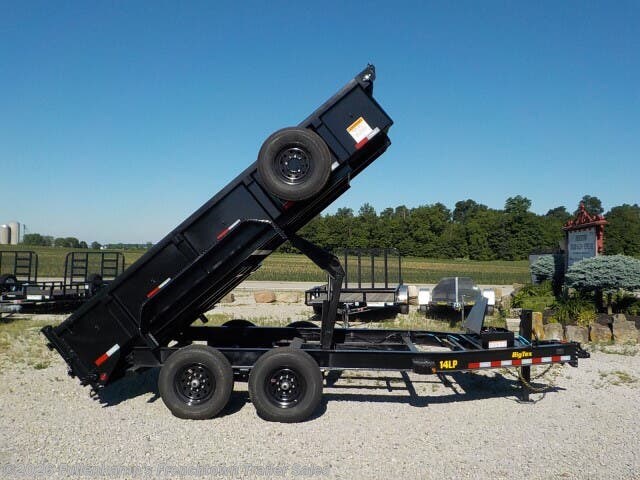 2026 BIG TEX TRAILER MFG. MODEL 14LP-14 BK6SIRPD HEAVY DUTY LO-PRO DUMP TRAILER, 102" OVERALL WIDE, 83" BETWEEN THE 10GA. 24" TALL SIDES X 14' LONG ON THE 10GA. SMOOTH STEEL FLOOR, STAKE POCKETS & J HOOKS ON SIDES, (4) D-RINGS WELDED IN CORNERS, COMBO REAR GATE BOTH SPREADER AND BARN DOORS, 8" I-BEAM 10# TONGUE AND MAINFRAME, 3" CHANNEL BED CROSSMEMBERS ON 16" CENTERS, LOCKABLE PUMP AND BATTERY BOX IN FRONT OF BED, 9" X 72" 14GA STEEL BLACK DIAMOND PLATE DOUBLE BROKE FENDERS, SELF CONTAINED ELECTRIC / HYDRAULIC SCISSORS HOIST POWER UP AND DOWN, 110V ON BOARD 5-AMP CHARGER, 12000# DROP LEG JACK, 18000# DEMCO ADJUSTABLE 2-5/16" BALL COUPLER W/ SAFETY CHAINS, ST235/ 80R 16 L.R. E RADIAL TIRES ON 8-BOLT BLACK MOD WHEELS W/ SPARE TO MATCH, (2) 7000# DROP AXLES W/ E-Z LUBE HUBS, BRAKES ON BOTH AXLES AND COMPLETE BREAK-A-WAY SYSTEM, DOT LEGAL, 7-WAY RV PLUG, CRANK STYLE MESH TARP KIT, 6' SLIDE IN REAR RAMPS, REAR STAB JACKS, LED LIGHTING PACKAGE, SEALED WIRING HARNESS, BLACK IN COLOR, 14000# GVWR, 4351# SHIPPING WEIGHT, SN: 16V1D1923T7434724