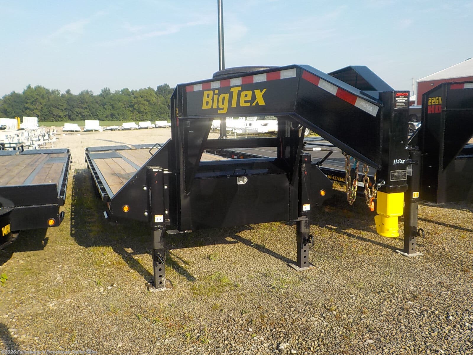 2026 BIG TEX TRAILER MFG. MODEL 22GN-30D5A 25BK + 5 MR LO-PRO GOOSENECK FLATBED, 102'' OVERALL WIDE W/ RUB RAIL & STAKE POCKETS 6'' CHANNEL OUTER RAIL, X 25' FLAT DECK, PLUS 5' OPEN STEEL DOVETAIL W/ 2 - 5' SPRING ASSIST FOLD OVER MEGA RAMPS W/ ADDITIONAL CLAMPS, DUAL 50K SPRING ASSIST DROPLEG JACKS, ADJUSTABLE 2-5/16'' DEMCO EZ LATCH BALL GOOSENECK COUPLER W/ SAFETY CHAINS,RETRACTABLE SIDE STEPS ON EACH SIDE, TREATED FLOORING, UPGRADED ST-215/75R X 17.5'' LOAD RANGE "H" TIRES, 8 - BOLT FLAT FACE OEM DUAL WHEELS, W/ SPARE TO MATCH, 10K AXLES W/ HEAVY DUTY 30K ADJUSTABLE SLIPPER SPRING SUSPENSION, 12'' I BEAM MAIN FRAME, W/ 3'' CHANNEL CROSSMEMBERS 16'' ON CENTER, DOT LEGAL, 7-WAY RV PLUG, RUBBER MOUNTED LED LIGHTS W/ NECK MOUNTED LOAD LIGHTS W/ SEALED HARNESS, LOCKABLE TOOL BOX BETWEEN THE GOOSENECK UPRIGHTS, BLACK IN COLOR, 23900# GVWR, 7460# SHIPPING WEIGHT. SN: 16V3F3820T6423539