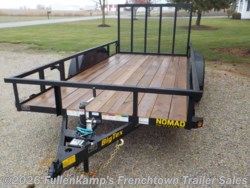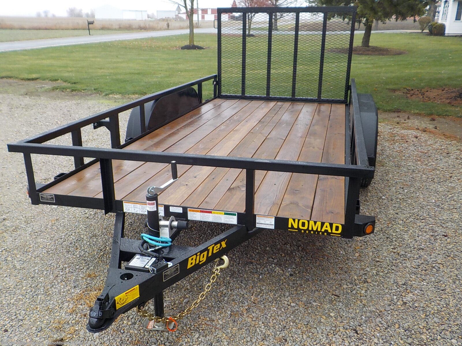 2026 BIG TEX TRAILER MFG. MODEL 60PI-14BK4RG2B TANDEM AXLE UTILITY TRAILER, 96" OVERALL WIDE, 77" BETWEEN THE FENDERS X 14' LONG ON THE FLOOR W/ 4' TALL FULL WIDTH SPRING ASSISTED REAR RAMP GATE, 3" X 2" X 3/16" ANGLE MAINFRAME WITH 4" CHANNEL TONGUE, 3" X 2" X 3/16" ANGLE CROSSMEMBERS ON 16" CENTERS, 2" X 2" X 1/2" ANGLE UPRIGHTS W/ 2-5/8" TUBE TOP RAIL SYSTEM, 9" X 72" ROLL FORMED TANDEM STEEL FENDERS W/ BACKS, (1) 2000# TOP WIND SET BACK JACK W/ SAND PAD, 2" A-FRAMED BALL COUPLER W/ SAFETY CHAINS, 2" TREATED WOOD DECKING, ST205/ 75R 15" L.R. C RADIAL TIRES ON 5 ON 5 B.P. BLACK MOD WHEELS, (2) 3500# SPRING AXLES W/ EQUALIZER, E-Z LUBE HUBS, BRAKES ON BOTH AXLES W/ COMPLETE BREAK-A-WAY SYSTEM AND BATTERY, DOT LEGAL, 7-WAY RV PLUG, LED RUBBER MOUNTED LIGHTS W/ SEALED WIRING HARNESS, BLACK IN COLOR, 6000# GVWR, 1400# SHIPPING WEIGHT, SN: 16V1U1726T7442111