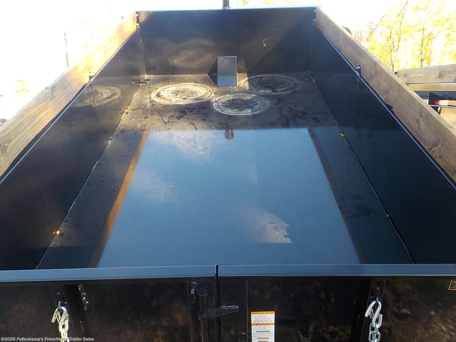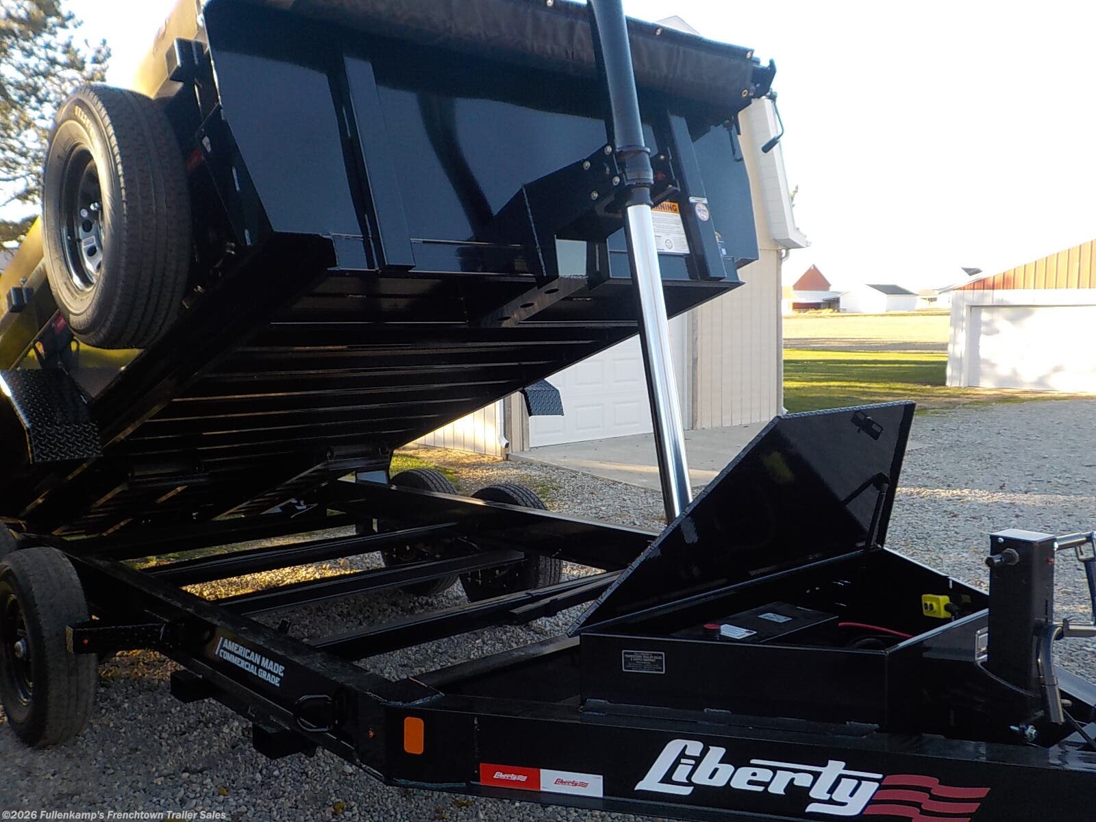 2026 LIBERTY TRAILERS MODEL LD14K83X14B8TS EXTRA HEAVY DUTY LO-PRO DUMP TRAILER, 102" OVERALL WIDE, 83" BETWEEN THE 10GA. 24" TALL SIDES X 14' LONG ON THE 7GA. SMOOTH STEEL FLOOR, STAKE POCKETS ON SIDES, RAISED FRONT PANEL & WOOD SIDE EXTENSIONS, D-RINGS WELDED IN CORNERS, COMBO REAR GATE BOTH SPREADER AND BARN DOORS, 8" I-BEAM TONGUE AND MAINFRAME, LOCKABLE PUMP AND BATTERY BOX IN FRONT OF BED, STEEL BLACK DIAMOND PLATE FENDERS, SELF CONTAINED ELECTRIC / HYDRAULIC HOIST W/ TELESCOPIC CYLINDER, 110V ON BOARD 8-AMP CHARGER, 12000# SPRING LOADED DROP LEG JACK, DEMCO EZ LATCH ADJUSTABLE 2-5/16" BALL COUPLER W/ SAFETY CHAINS, ST235/ 80R 16 L.R. E RADIAL TIRES ON 8-BOLT BLACK MOD WHEELS W/ SPARE TO MATCH, (2) DEXTER 7000# DROP AXLES W/ E-Z LUBE HUBS, BRAKES ON BOTH AXLES AND COMPLETE BREAK-A-WAY SYSTEM, DOT LEGAL, LODESTONE MAGNETIC 7-WAY RV PLUG, CRANK STYLE MESH TARP KIT, 6' SLIDE IN REAR RAMPS, REAR STAB JACKS, LED LIGHTING PACKAGE, SEALED WIRING HARNESS, BLACK IN COLOR, 15400# GVWR, 4300# SHIPPING WEIGHT, SN: 5M4LD1424TF050724