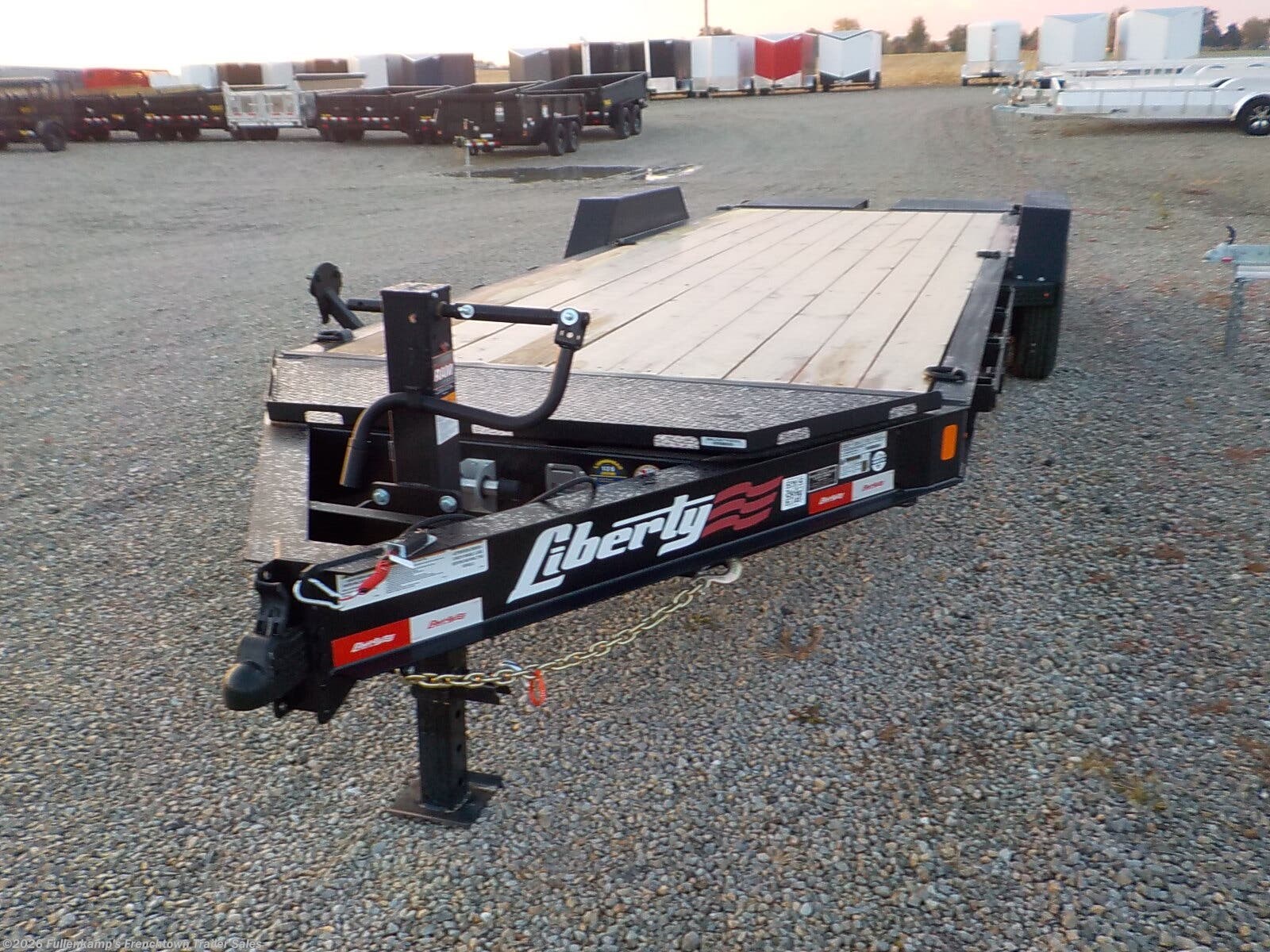 2026 LIBERTY TRAILERS MODEL LE16K83X19+3 HEAVY DUTY EQUIPMENT TRAILER, 102" OVERALL WIDE, 83" BETWEEN THE REMOVEABLE FENDERS W/ RUBRAIL AND STAKE POCKETS X 19' STRAIGHT DECK PLUS 3' SELF CLEANING DOVETAIL, DRINGS FOR TIE DOWNS, 22' TOTAL LENGTH, (2) FULL WIDTH FLIP OVER FLAT SPRING ASSISTED MAMMOTH RAMPS, OVERSIZED LOCKABLE LID STORAGE IN TONGUE, 8" I BEAM MAINFRAME & TONGUE, 3" CHANNEL CROSSMEMBERS ON 16" CENTERS, REMOVEABLE DIAMOND PLATE STEEL FENDERS, (1) 12000# SPRING-LOADED DROP LEG JACK W/ SANDPAD, SKID STEER FORK STORAGE POCKETS, ADJUSTABLE 2-5/16" DEMCO EZ LATCH BALL COUPLER W/ SAFETY CHAINS, TREATED PINE LUMBER DECKING, ST215/ 75R 17.5 LOAD RANGE H RADIAL TIRES, (2) 8,000# DEXTER SLIPPER SPRING AXLES W/ FORTRESS BEARING PROTECTION CAPS, ELECTRIC BRAKES ON BOTH AND COMPLETE BREAK-A-WAY SYSTEM AND BATTERY, DOT LEGAL, LODESTONE MAGNETIC 7-WAY RV PLUG, LED LIGHTING PACKAGE, SEALED WIRING HARNESS, BLACK IN COLOR, 17,500# GVWR, 3820# SHIPPING WEIGHT, SN: 5M4LE2027TF047910