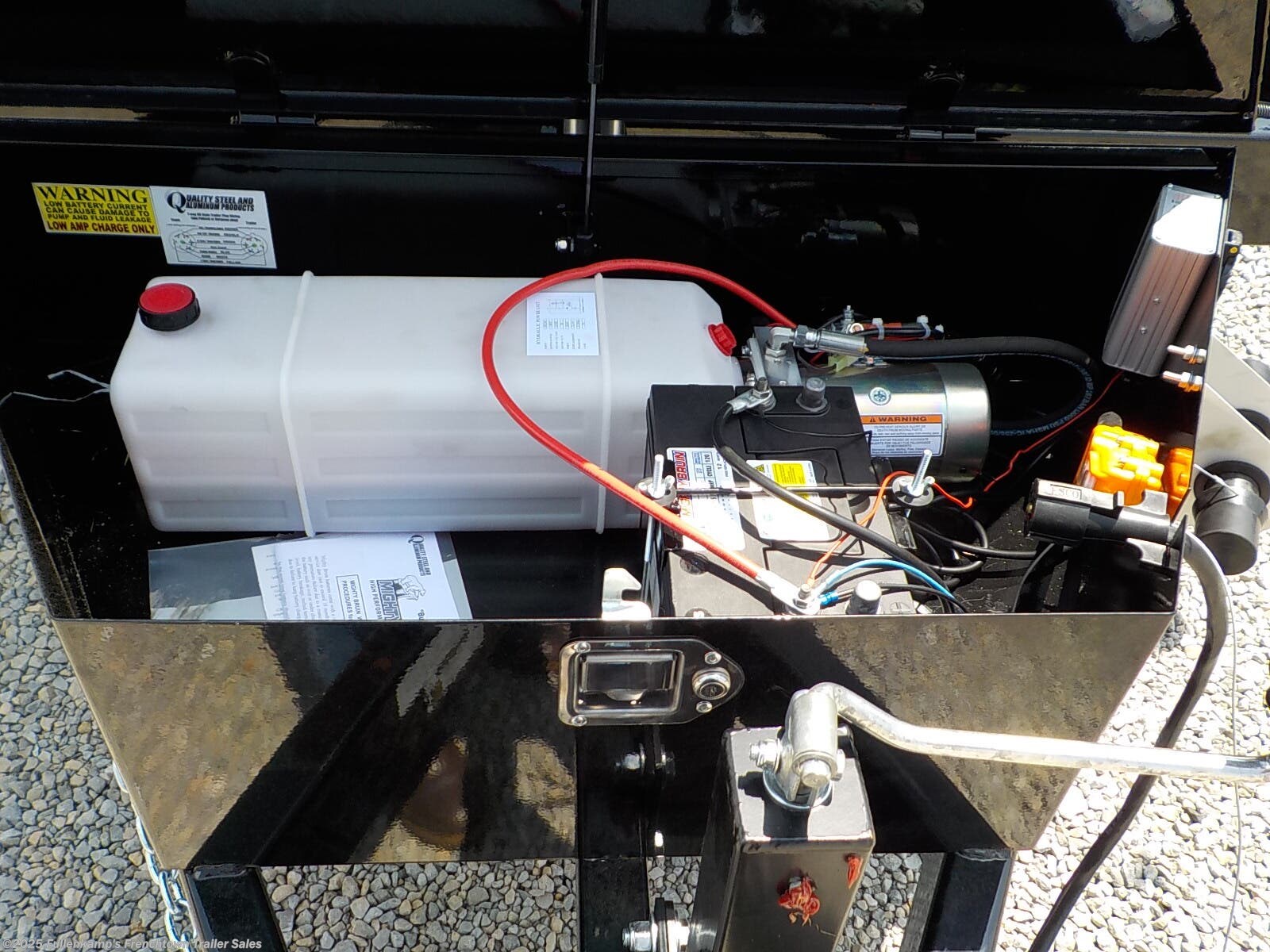 2026 QUALITY STEEL & ALUMINUM TRAILER MFG. MODEL 8316DTA 14K LOW PROFILE DUMP TRAILER, 102'' OVERALL, 83'' BETWEEN THE SIDES, X 16' LONG DECK, RAMP BARN DOOR COMBO, W/ 24'' SOLID STEEL SIDES, W/ STAKE POCKETS, SMOOTH STEEL FLOORING W/ "D" RINGS WELDED IN PLACE, SELF CONTAINED HYDRAULIC SYSTEM W/ POWER UP & DOWN, A CHARGE WIRE, BATTERY CHARGER IN THE TOOL BOX, TELESCOPING CYLINDER, 7K TOP WIND DROP LEG JACK, ADJUSTABLE 2 - 5/16'' BALL COUPLER W/ SAFETY CHAINS, TANDEM FENDERS, ST - 235/80R X 16'' (3520#) LOAD RANGE "E" TIRES 8 - BOLT MOD WHEELS W/ SPARE, 2'' X 6'' TUBE MAIN FRAME, W/ TUBE CROSSMEMBERS, 7000# SLIPPER SPRING AXLES, DOT LEGAL, RV PLUG, RUBBER MOUNTED LIGHTS, ROLL TARP, REAR STABILIZER JACKS, ZINC PRIMER, BLACK IN COLOR, 14000# GVWR, 4400# SHIPPING WEIGHT, SN: 5LEB1DF28T1267038